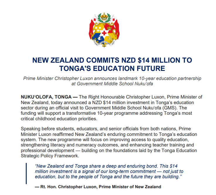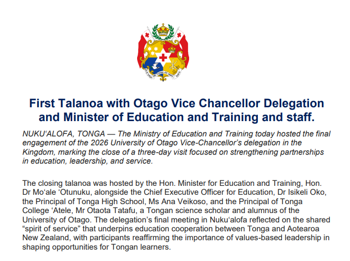 For us as Tongans, two pillars have always shaped who we are: Lotu mo e Ako — Faith and Education. The Ministry of Education and Training carries one of these sacred responsibilities, and with it comes a duty to light the pathway for our children and future generations. Our Tongan values must remain at the heart of everything we do. They are not optional—they are our compass. Our four core Tongan values—Faka‘apa‘apa (Respect), ‘Ofa (Love), Fatongia (Responsibility), and Fetokoni‘aki (Cooperation)—must be intentionally embedded into our education system, our curriculum, our teaching practices, and our everyday life skills.