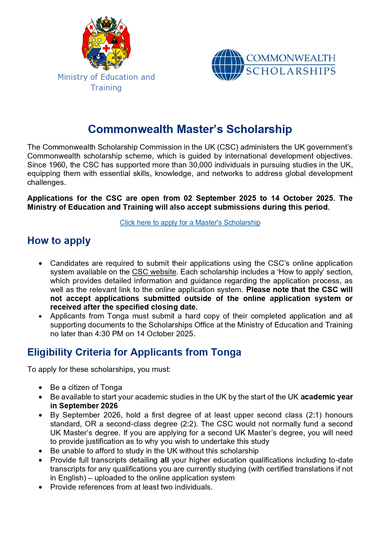 Commonwealth Master’s Scholarship
